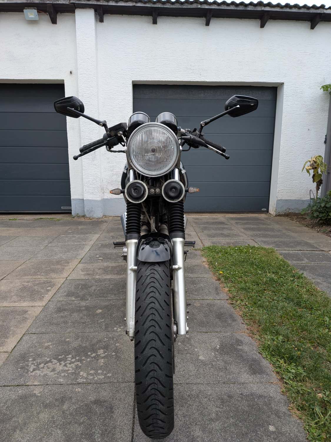 Ich habe das Motorrad damals in schlechtem Zustand günstig gekauft und in Eigenregie wieder "aufgebaut", dementsprechend sind Lackteile teilweise nicht perfekt etc. . Technisch ist das Motorrad jedoch in einwandfreiem Zustand, da sie von mir immer gewartet wurde. Ich bin selbst gelernter Zweiradmechatroniker und habe einige Motorräder.