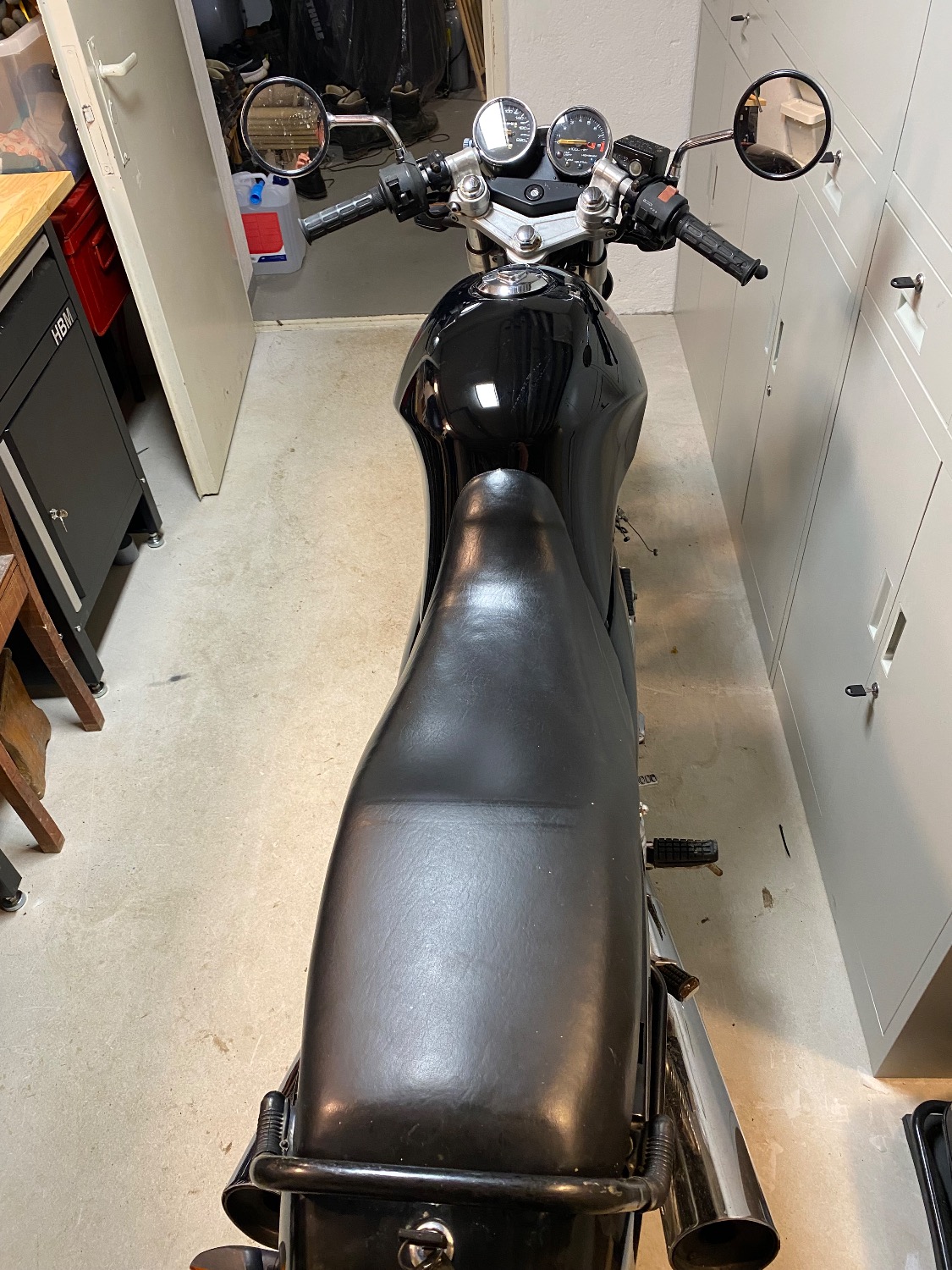 Tank entrostet und professionell lackieren lassen, Stahlflex verbaut und Bremsen neu gemacht. Luftfilter, Zündkerze und Öl mit Filter neu.